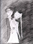 A spoof of the famous pose from The Phantom of the Opera song number, “Music of the Night,” with Mamoru and Usagi as